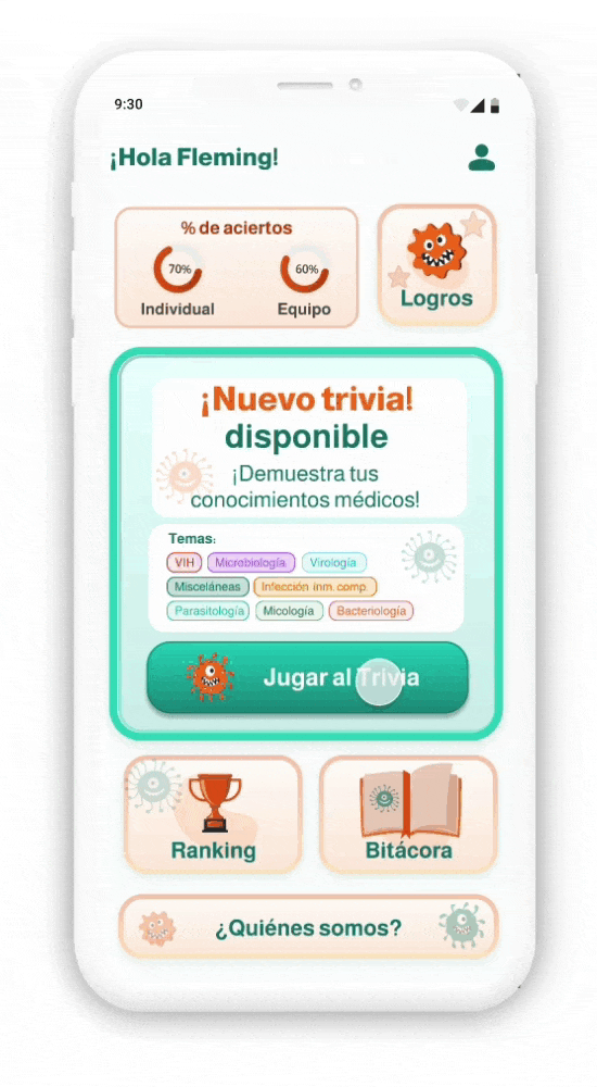 The project was based on creating a trivia game for medical graduates and practicing doctors, challenging them to form teams, answer questions, top the rankings, and achieve milestones. For this, we needed a gamified app that effectively combined the seriousness of medical concepts with the humorous tone used to communicate within the app.